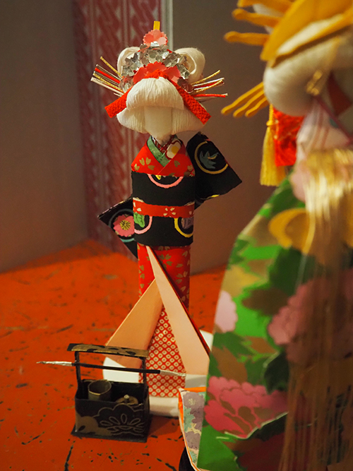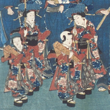 ↓花魁に花を添える花形娘、禿(かむろ)